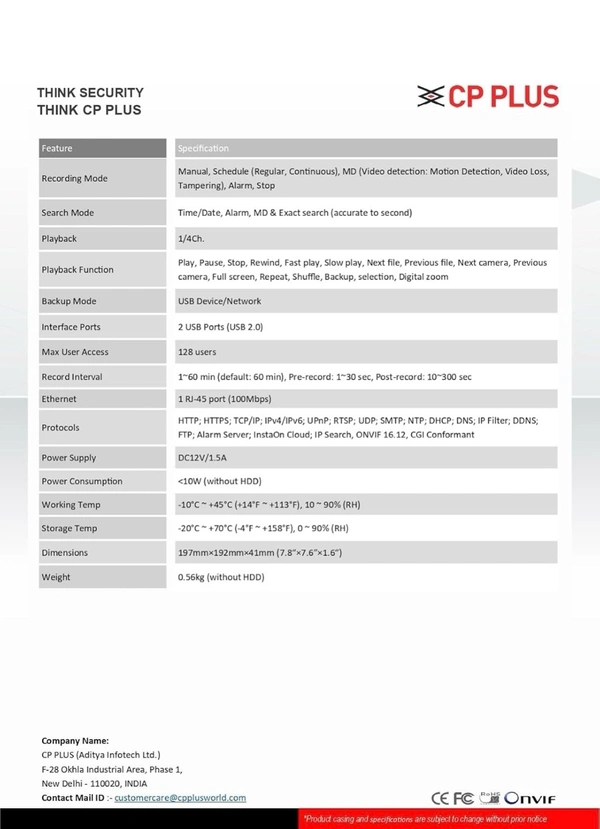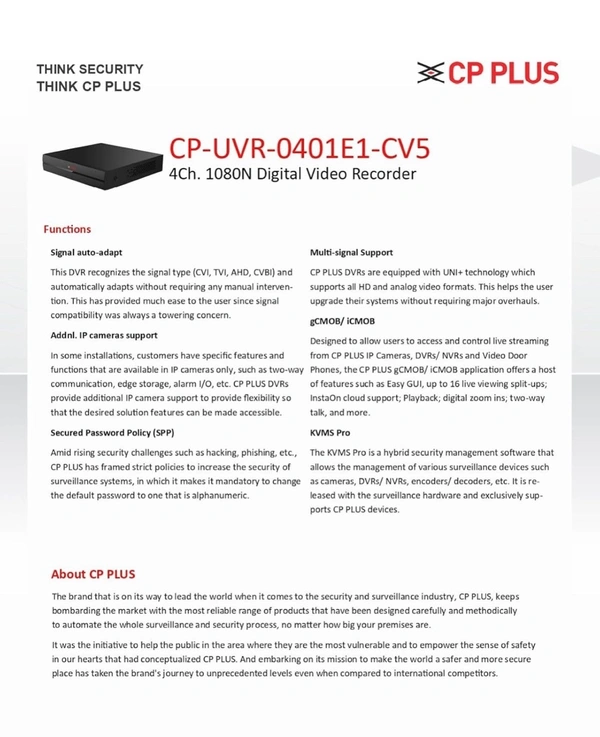 • Supports up to 2.4MP Cameras – CP Plus & compatible cameras ke saath smooth performance