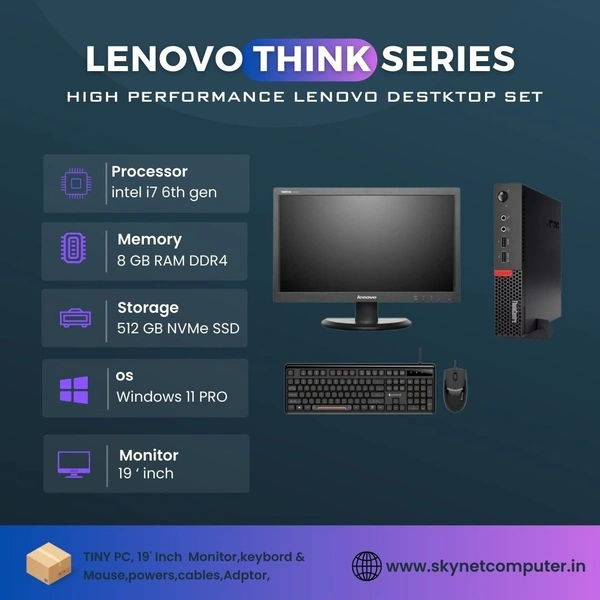 (Refurbished) Lenovo Full Desktop Set – Tiny Workstation Intel i7-6100T | 8GB RAM | 512GB NVMe SSD | 19” Lenovo ThinkVision Monitor | Keyboard & Mouse | Wi-Fi & Bluetooth | Windows 11